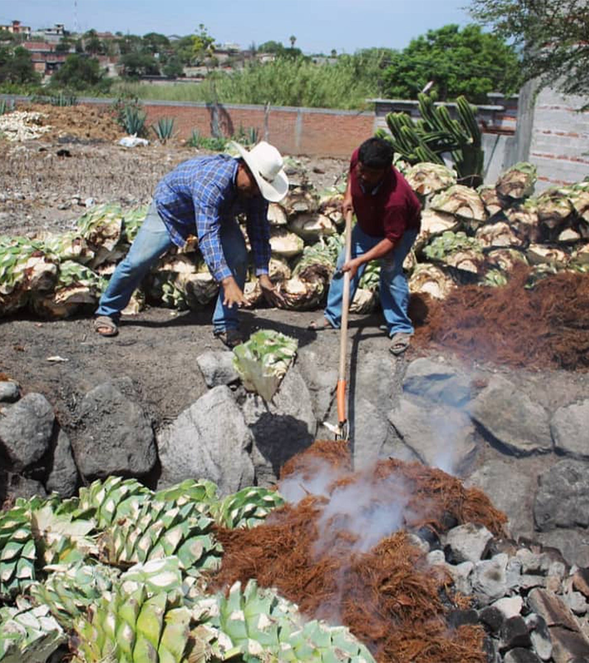 Las piñas seleccionadas son cocidas en un horno cónico de piedra excavado en la tierra, calentado con madera de encino a altas temperaturas. La cocción, que dura varios días, aporta un toque ahumado característico. Para nuestros maestros mezcaleros, el equilibrio entre la tierra, la piedra y el fuego es esencial, buscando una ahumado sutil que se integre con los sabores del agave.