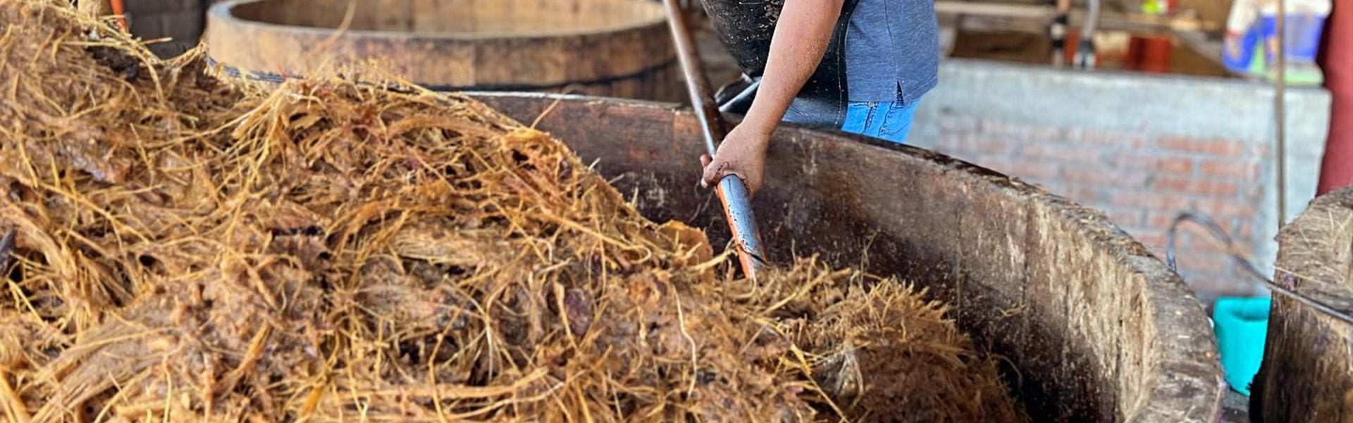 Los trozos de piñas trituradas se colocan en tinas de madera de pino con agua de manantial para iniciar la fermentación, supervisada de cerca por los maestros mezcaleros.Esta etapa, que dura varios días, es crucial para que el néctar dulce de las piñas comience su transformación. La atención diaria a los matices de la fermentación es clave para producir un mezcal excepcional.